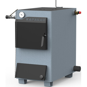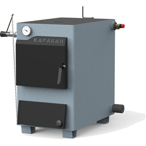 Достоинство этого котла - малые габариты в плане. По этой причине котел КАРАКАН-10 активно используют для отопления вахтовых домиков - на площади в треть квадратного метра получаем и отопительную установку, и варочную печь. Зачастую потребители предпочитают пользоваться для отопления блоком ТЭНов, а возможности твердотопливного котла приберечь для аварийного отключения электроэнергии.